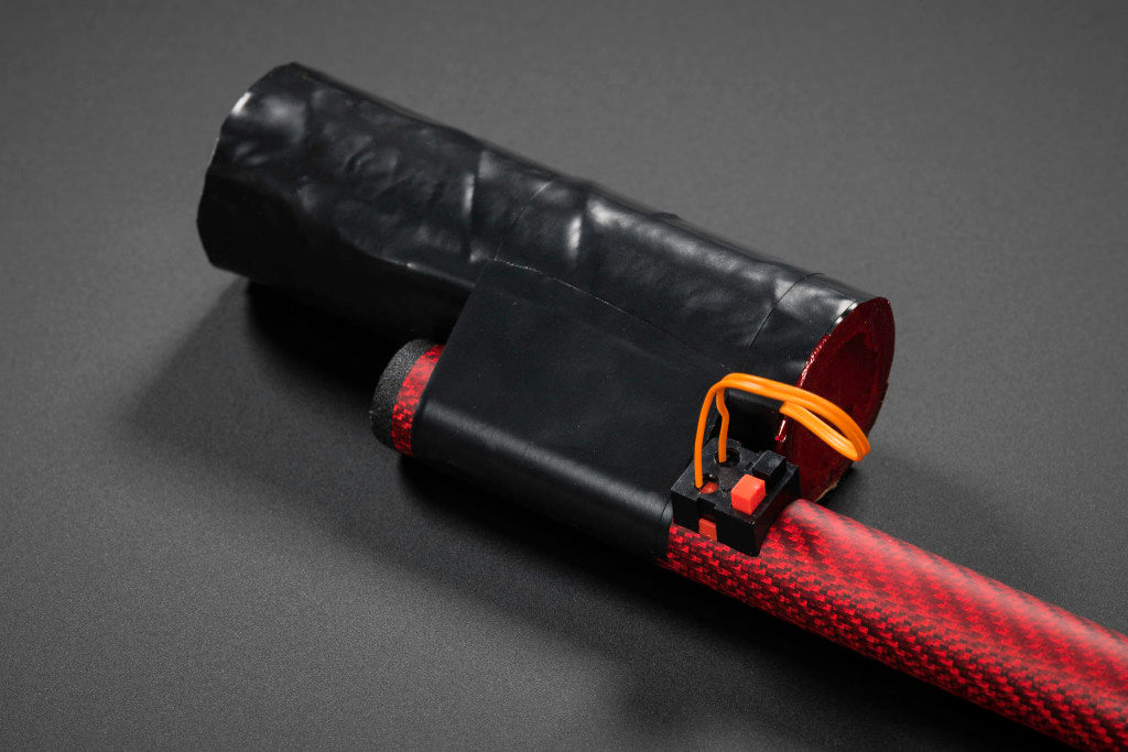 The Boom Stick V2 by Pyroterra Lighttoys is a pyrotechnic ignition staff designed for spectacular stage effects. This lightweight carbon fiber stick is optimized for use with gerb or silver fountain pyrotechnics (not included) and is equipped with a rechargeable Li-ion battery, USB-C charging, and enhanced safety features for professional performances.
