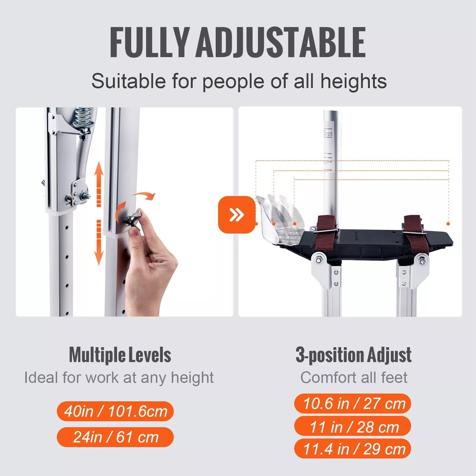 - Adjustable Heights: Easily adjustable from 24'' to 40'' (61–101.6 cm), these stilts are perfect for various tasks.