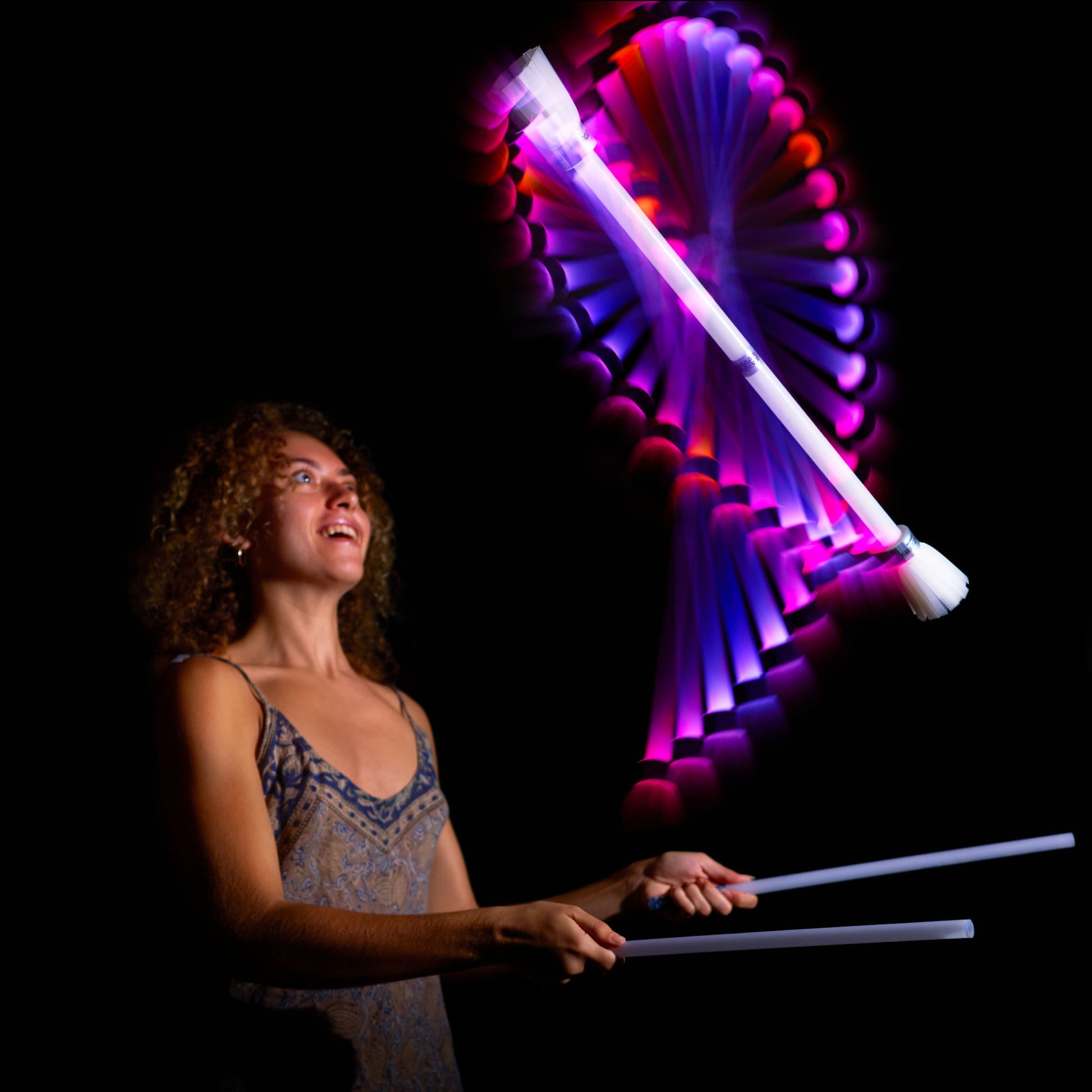 Step up your devil stick game with the Lumi Pro Rechargeable TrickStix – the next-gen upgrade of the original Lumi TrickStix! With USB-C charging and a full spectrum of vibrant colour modes, spinning in the dark just got a whole lot easier (and brighter).
