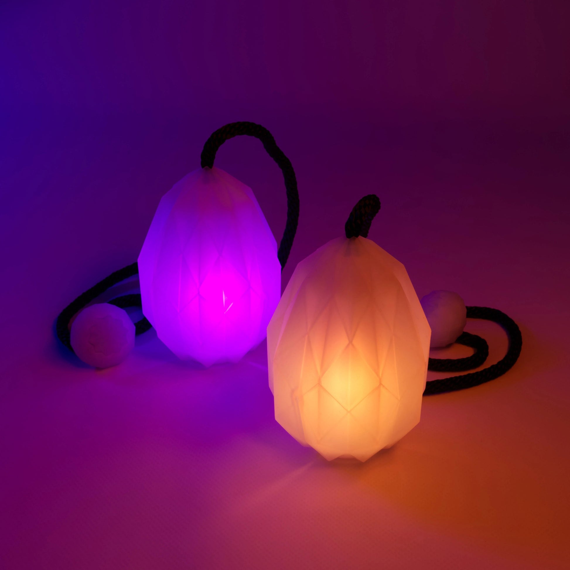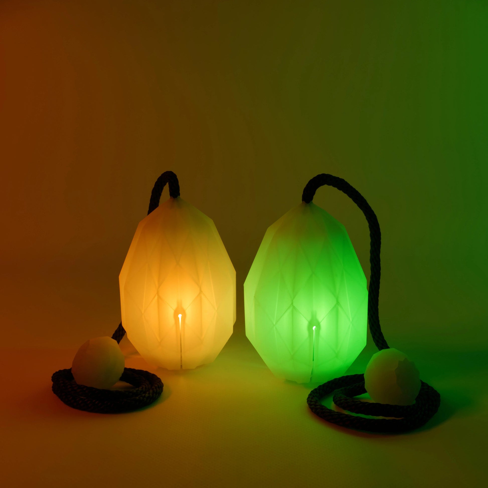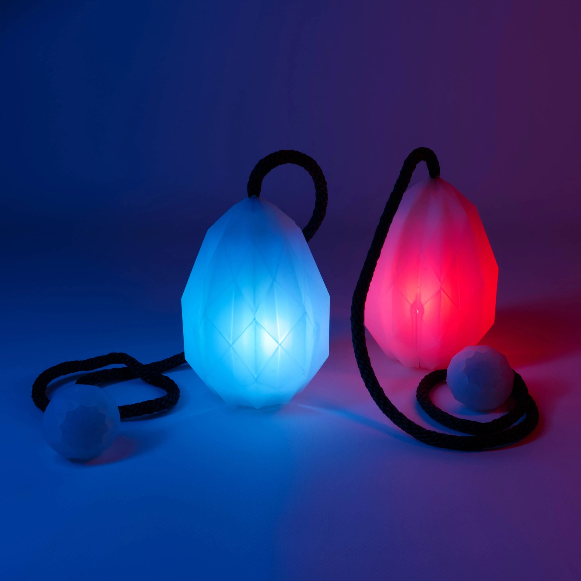 Inspired by light rays dispersing through a triangular prism to create a rainbow spectrum. Inspiration of nature and geometry to form geometric silicone shells that refract the LED colours brilliantly.